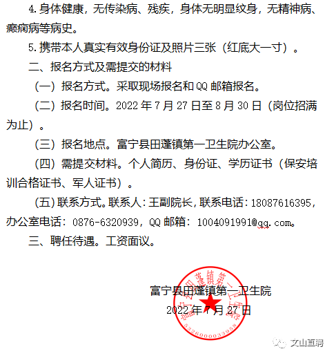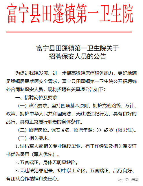 富宁县田蓬镇第一卫生院招聘公告