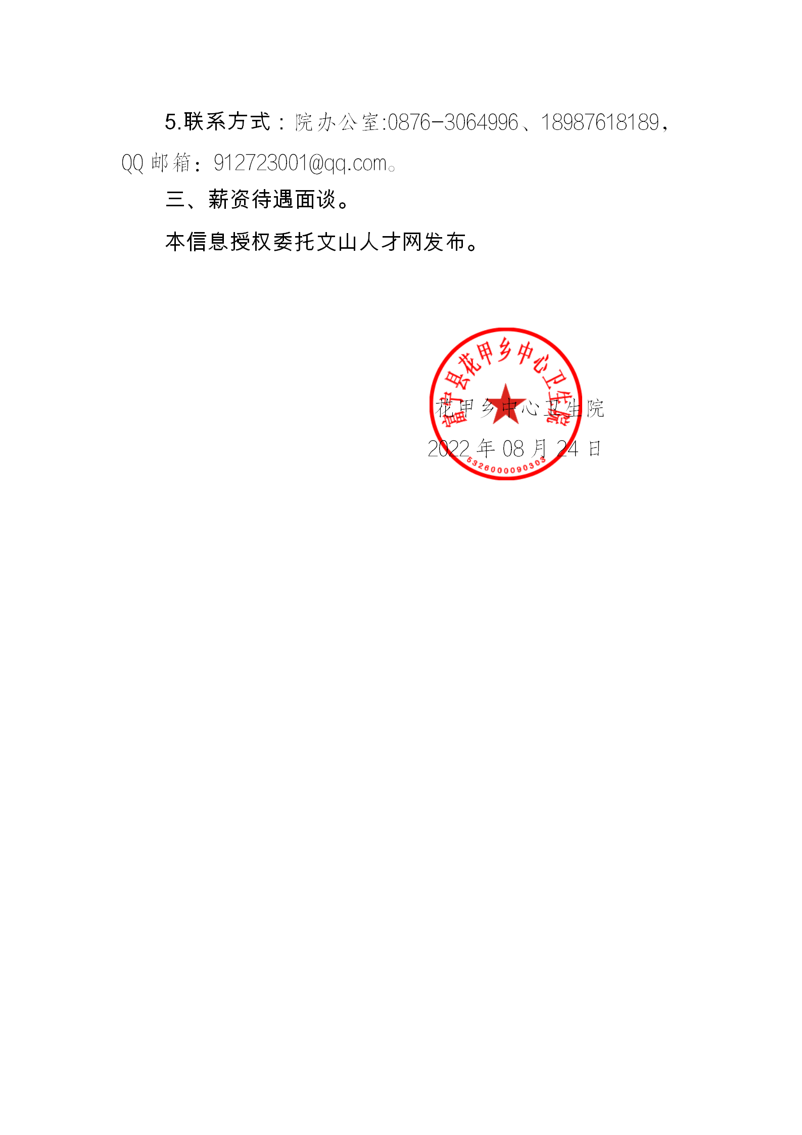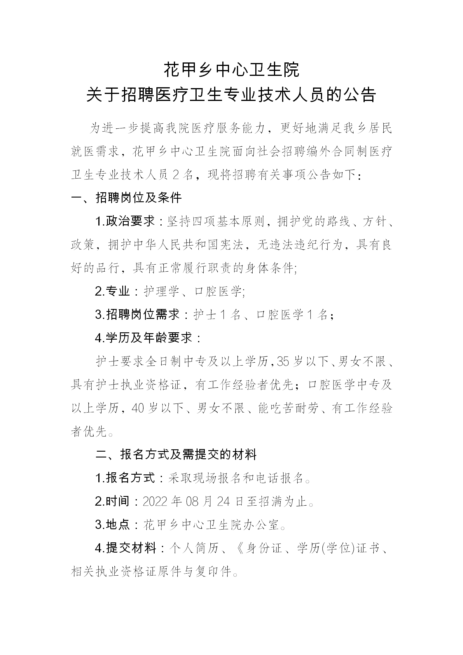 文山州富宁县花甲乡中心卫生院关于招聘医疗卫生专业技术人员的公告