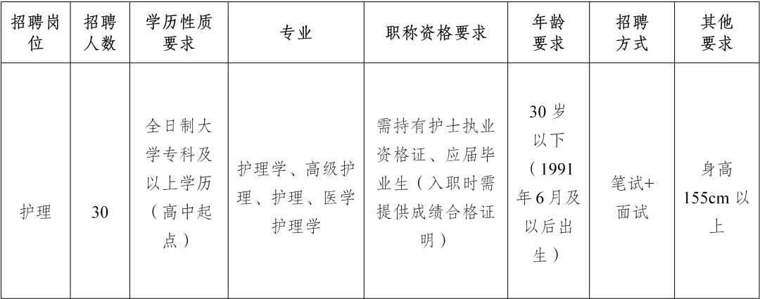2021年面向社会公开招聘合同制护理岗位人员30名的通告!