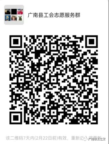 符合招募条件并自愿参加疫情防控工作志愿服务工作的市民,可直接扫码加入广南县总工会志愿者服务群并填写《广南县总工会志愿者服务队报名表》发至QQ邮箱(1159321629@qq.com)。