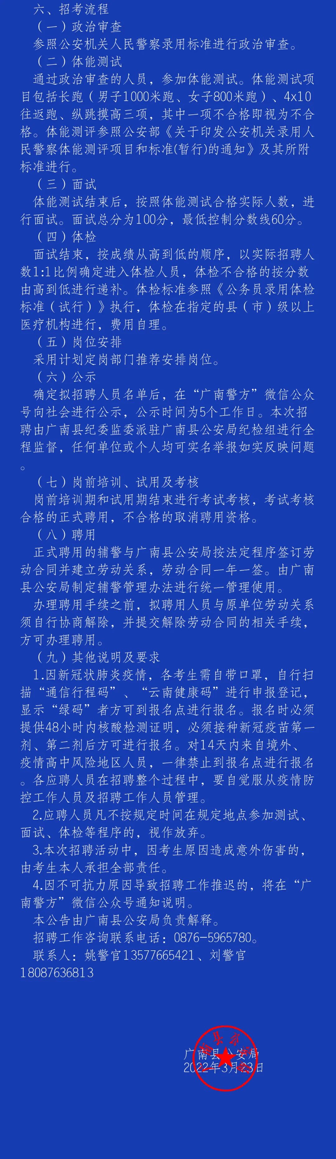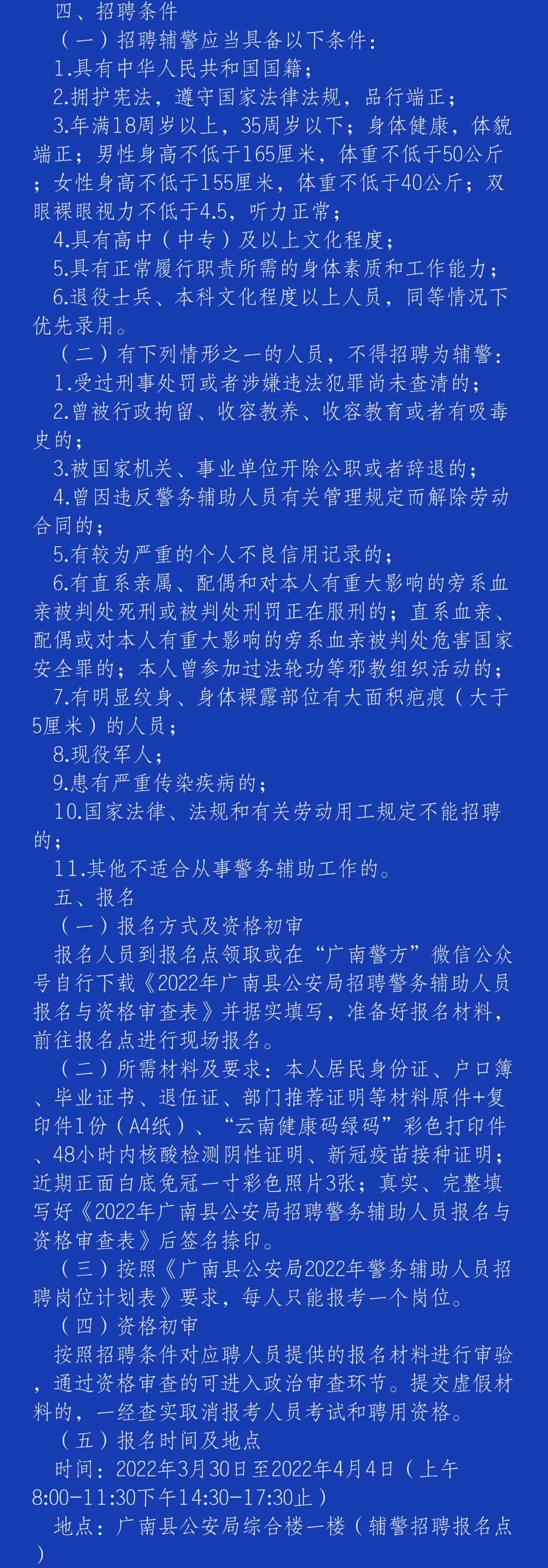 广南县公安局警务辅助人员招聘公告