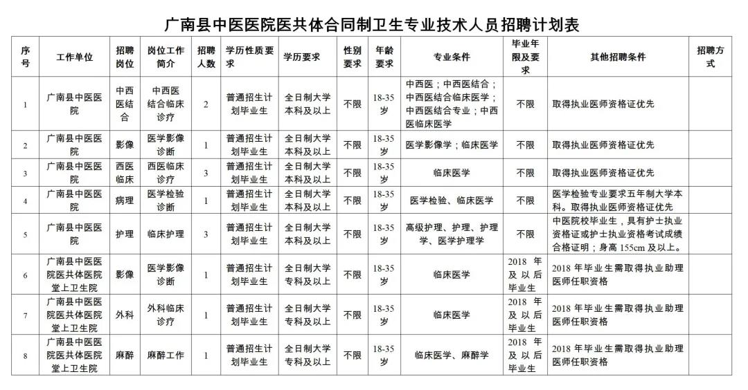 广南县中医医院医共体合同制卫生专业技术人员招聘公告