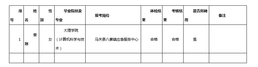 马关县2020年度事业单位公开招聘工作人员体检、考核结果及拟聘用人员名单公示