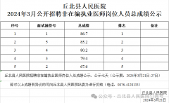 云南事考网整理2024年3月文山州丘北县人民医院招聘非在编执业医师岗位人员总成绩公示以供广大网友查阅,详情内容如下所示: