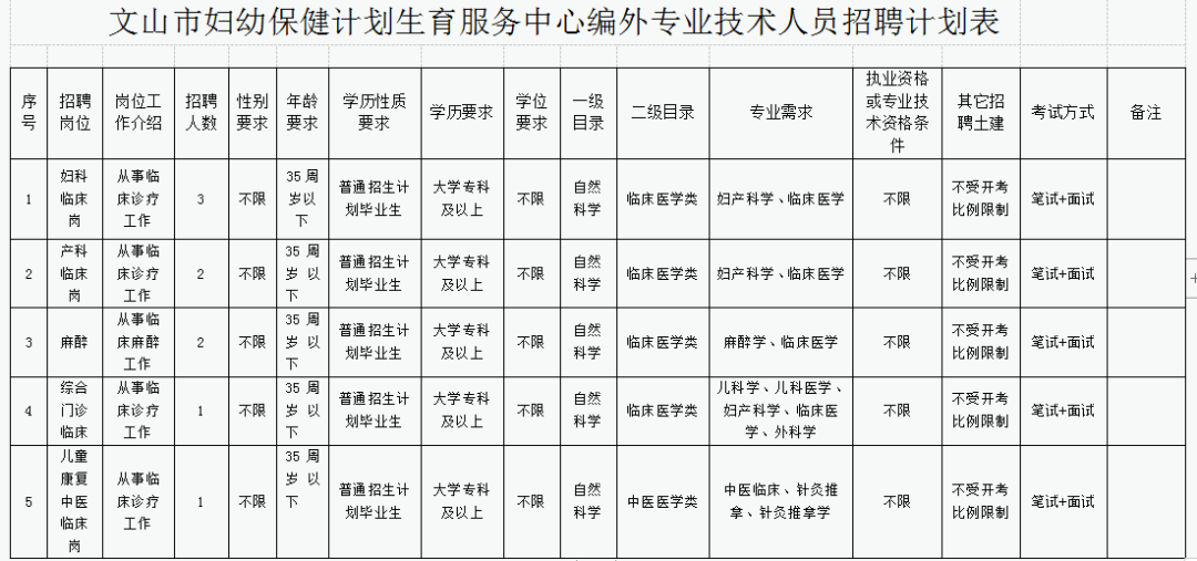 文山市妇幼保健计划生育服务中心招聘9人