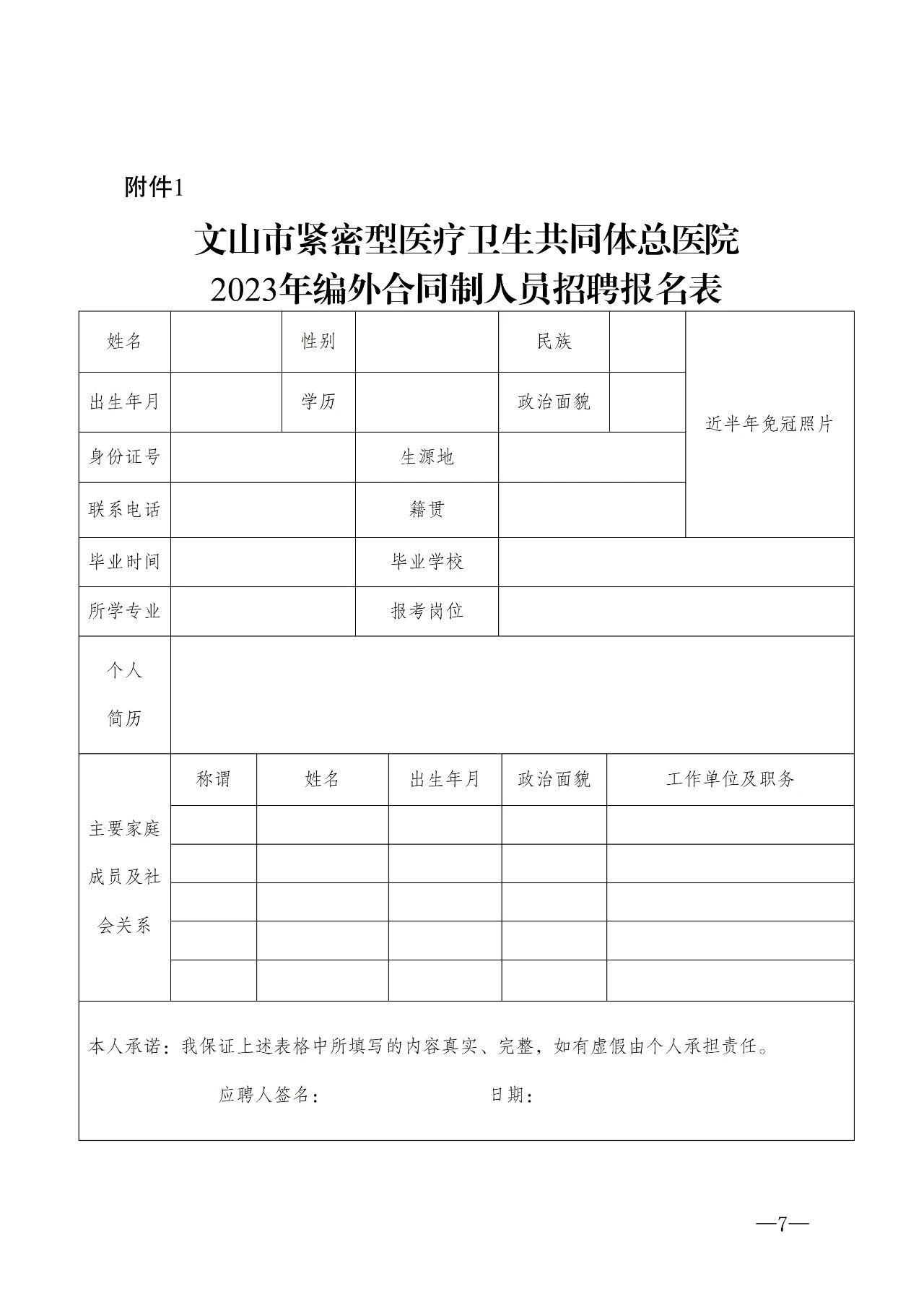 附件:1.文山市紧密型医疗卫生共同体总医院2023年编外合同制人员招聘报名表