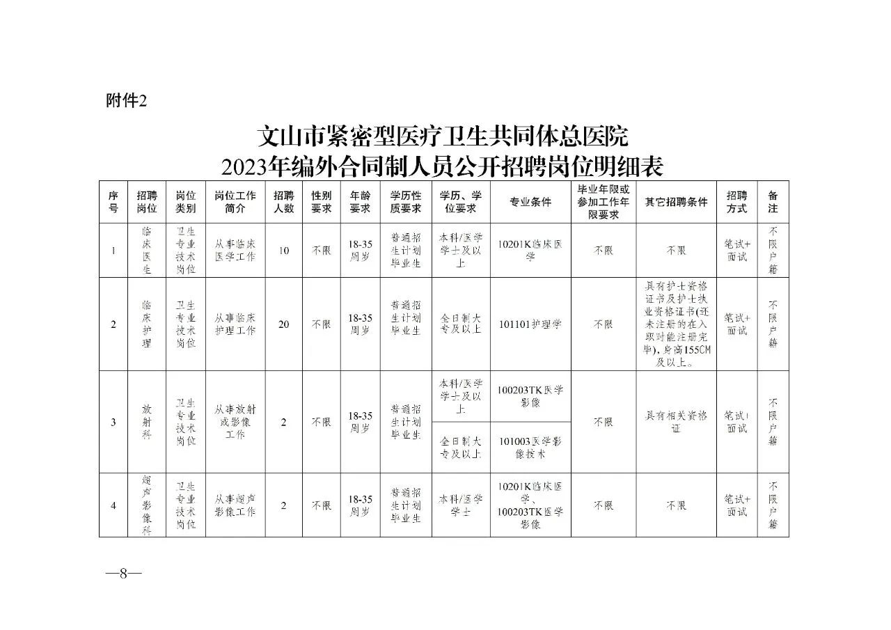 2.文山市紧密型医疗卫生共同体总医院2023年编外合同制人员公开招聘岗位明细表