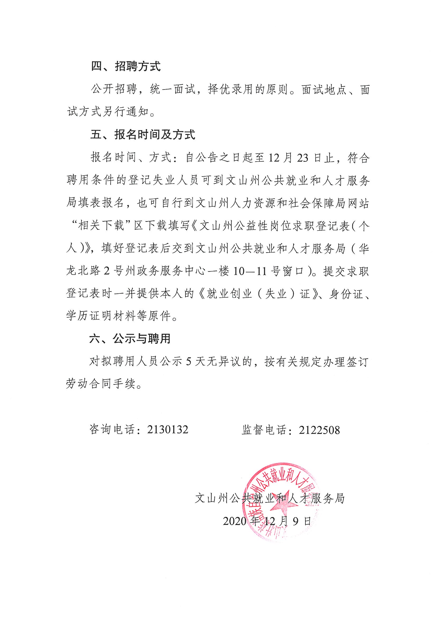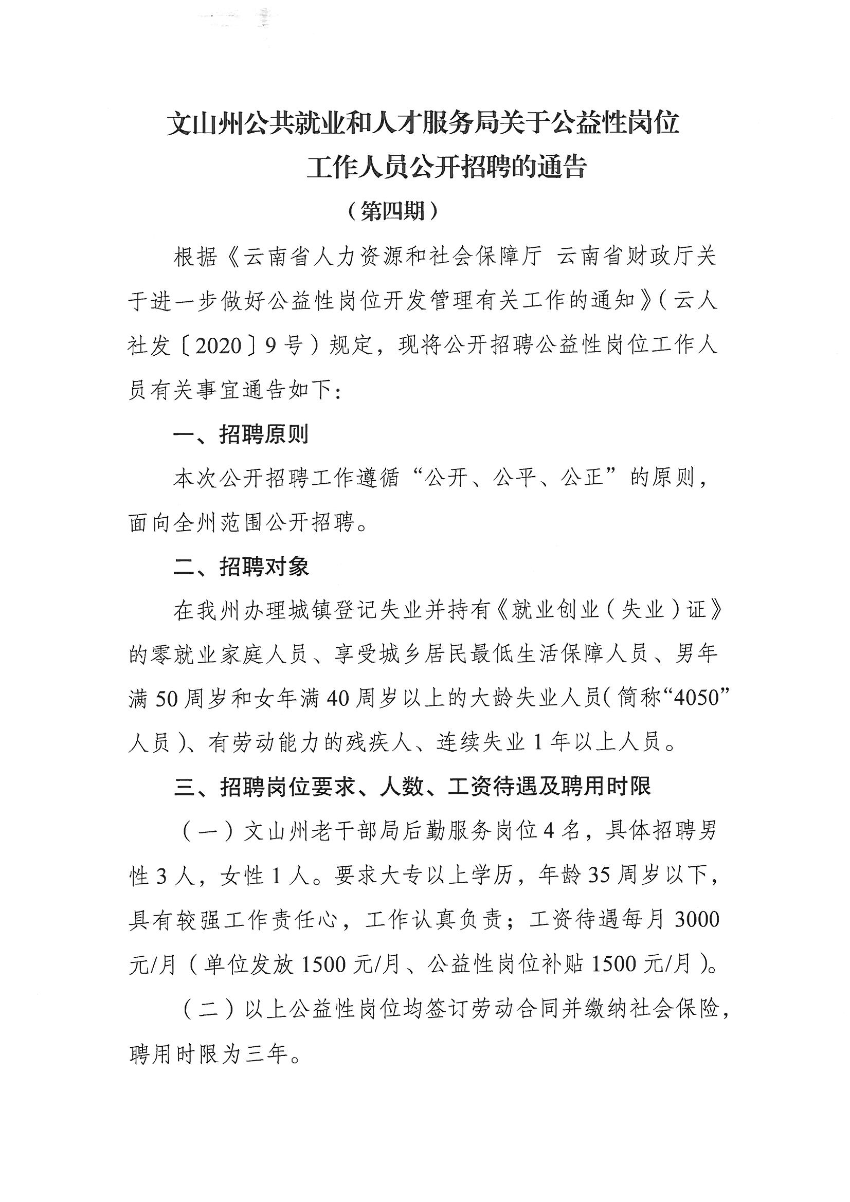 2020年文山州公共就业和人才服务局公益性岗位招聘通告(第四期)