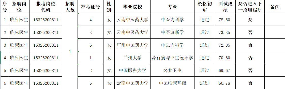 根据《2023年文山州事业单位紧缺岗位招聘通告》《2023年文山州州直卫生健康单位紧缺岗位招聘通告》,2023年3月3日文山州妇幼保健院组织开展了面试,现将面试成绩公布如下。