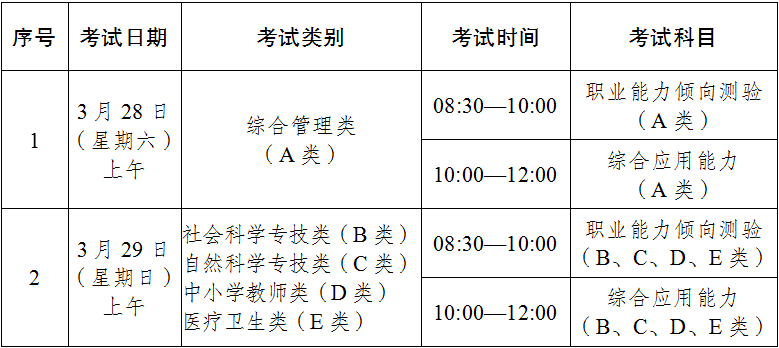 一、考试时间及科目