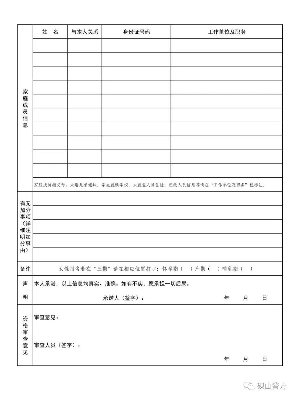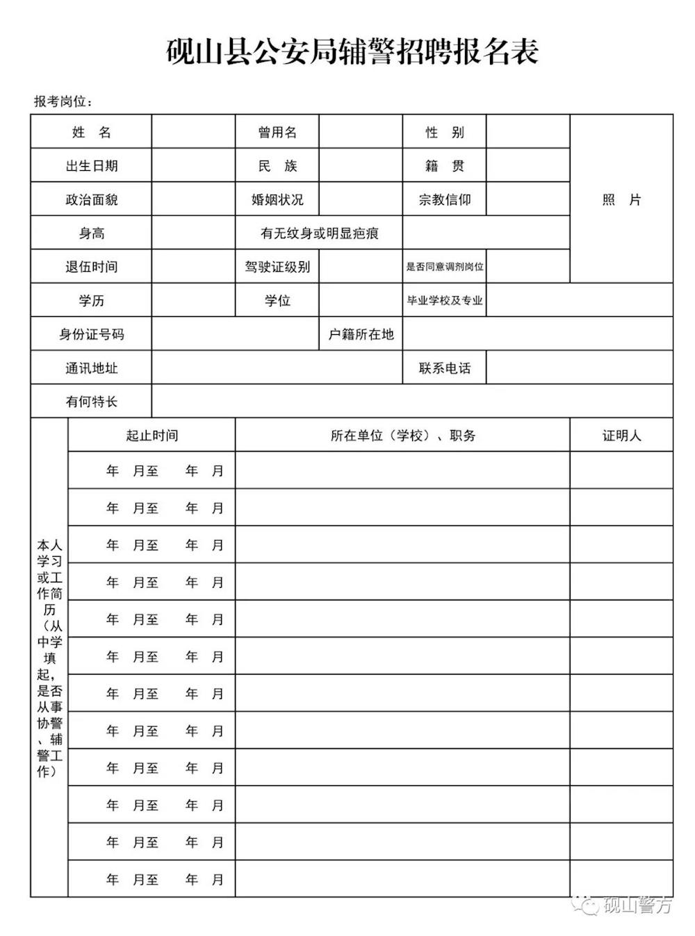 2.砚山县公安局辅警招聘报名表