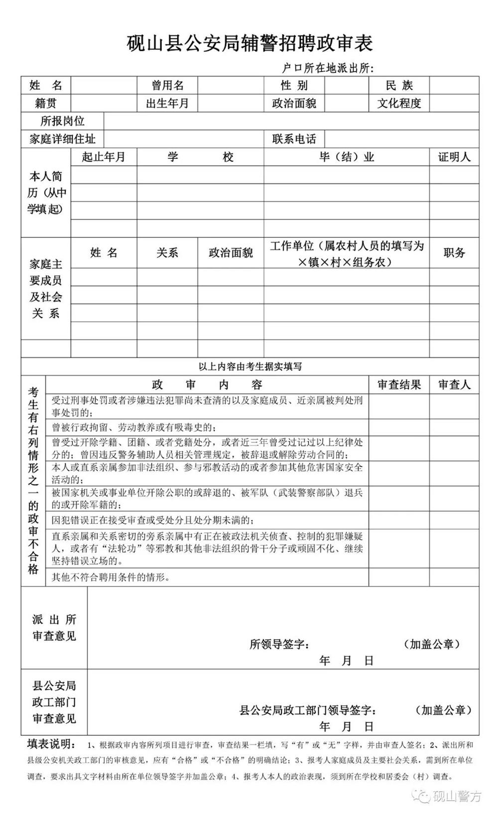 3.砚山县公安局辅警招聘政审表