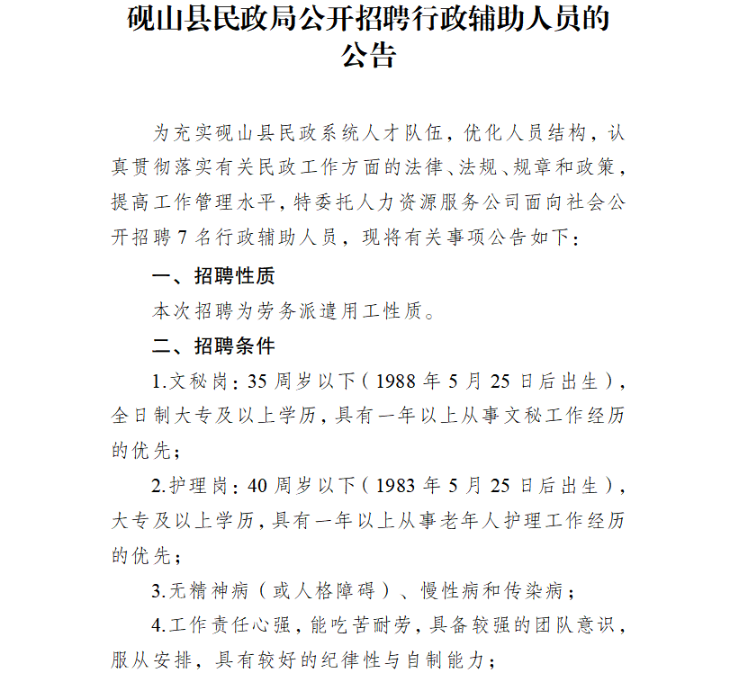 砚山县民政局公开招聘行政辅助人员的公告