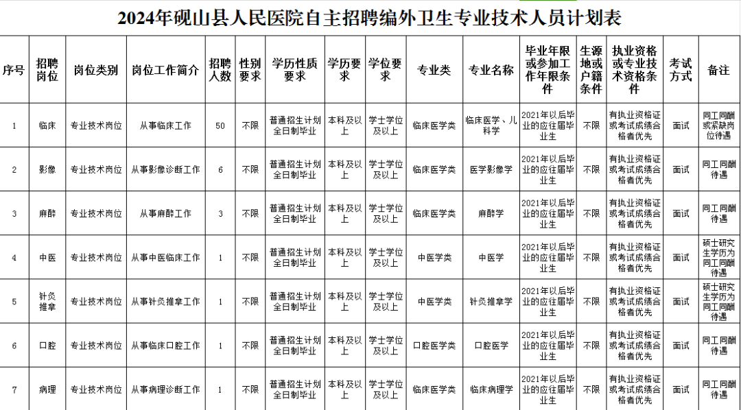 (《2024年砚山县人民医院自主招聘编外卫生专业技术人员计划表》)