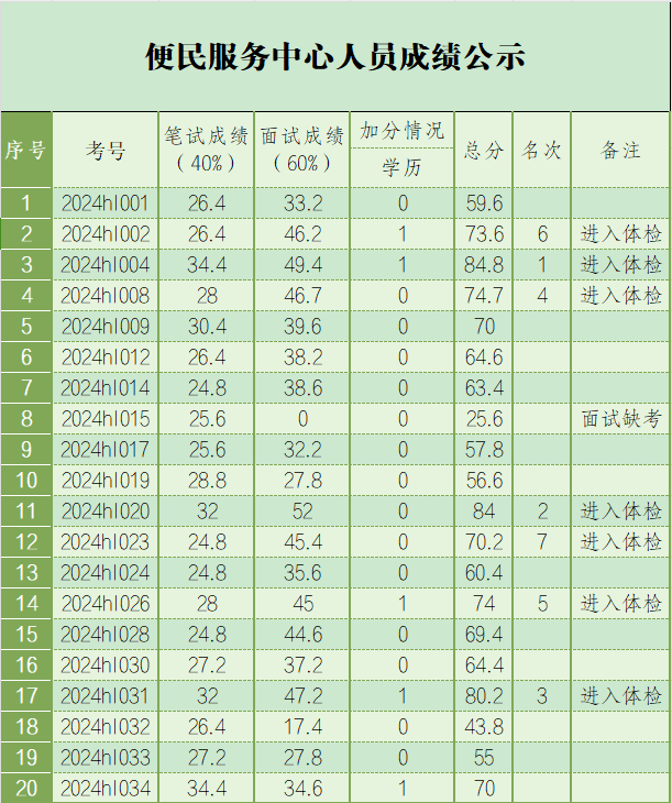 2024年3月公开招聘编外人员成绩公示