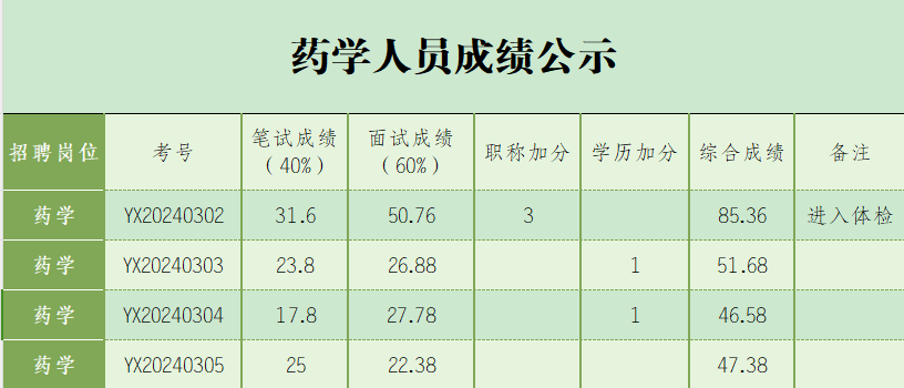 砚山县第二人民医院2024年3月公开招聘编外人员成绩公示如下: