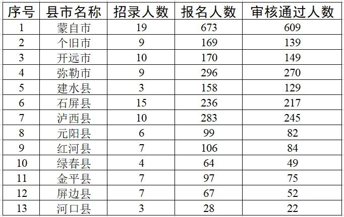 根据团中央、教育部、财政部、人力资源社会保障部等部门关于实施2022年西部计划的工作部署,2022年西部计划云南省地方项目志愿者招募工作已经正式启动。为选拔符合条件的普通高等学校应届毕业生或在读研究生到我州基层参加西部计划志愿服务,现将截止2022年6月10日16:00的相关数据公告如下。