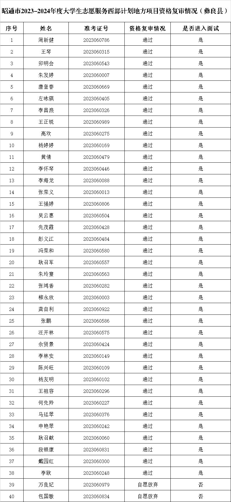 根据《昭通市2023-2024年度大学生志愿服务西部计划省级地方项目志愿者招募公告》,按照公平、公正、公开的考试原则,为确保彝良县2023-2024年度大学生志愿服务西部计划省级地方项目志愿者招募工作顺利推进,现将面试相关事项公告如下。