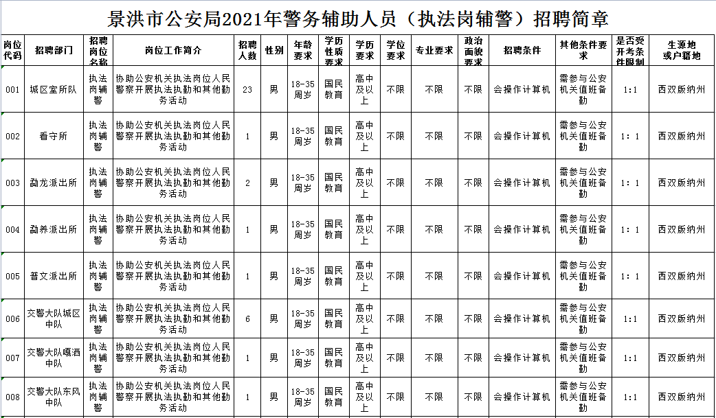 获取《景洪市公安局2021年警务辅助人员招聘简章》