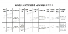 2024年西双版纳州勐海县公安局警务辅助人员招聘时间:2024年4月22日至4月25日(上午08:00—12:00,下午14:30—18:00)。