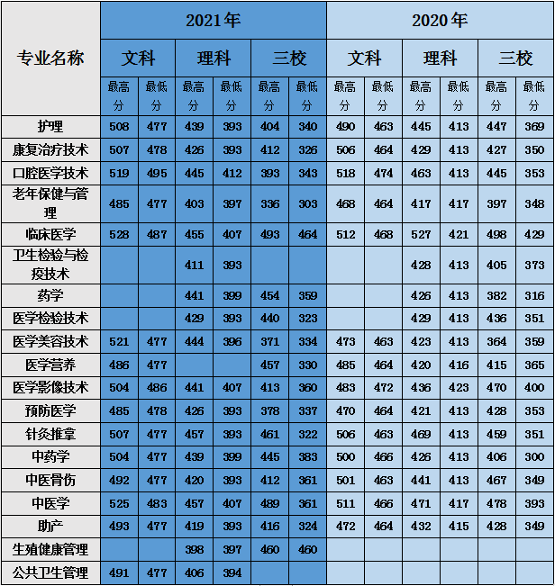1.三年制普通专科招生对象:参加2022年高考的应往届高中毕业生和参加2022年“三校生”高考的医学类、护理类、药学类“三校”毕业生。