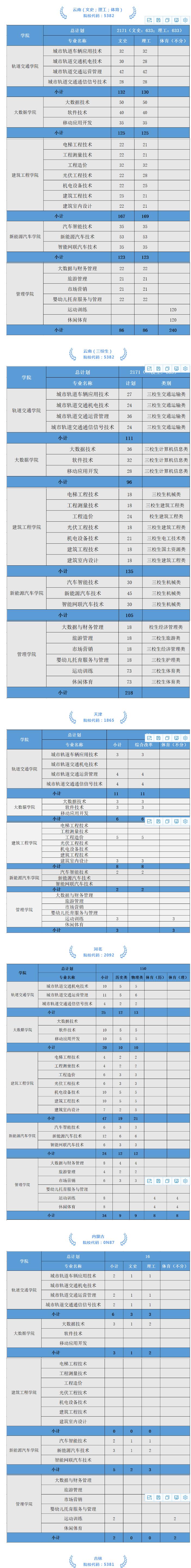 云南理工职业学院2022年分省分专业招生计划