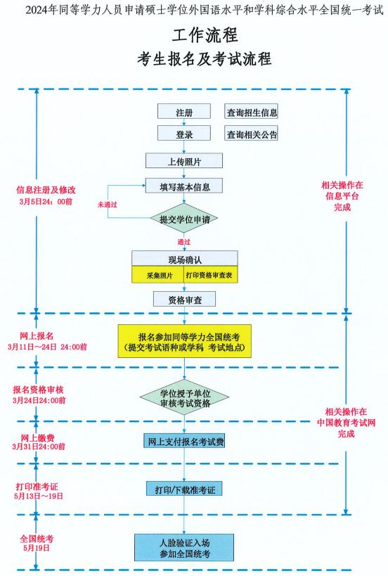 1.注册及在册信息修改。拟参加2024年同等学力全国统考的考生于3月1日24:00前在信息平台完成注册、信息采集及在册信息更新。逾期不可重新注册及修改。