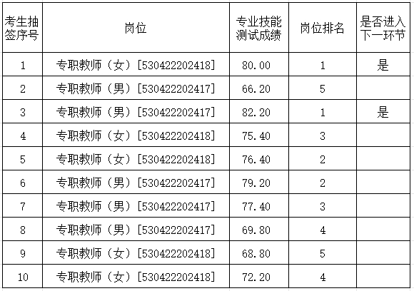 专业技能测试成绩公示