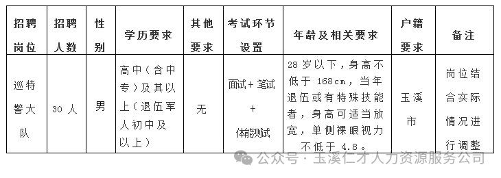 10.在玉溪市公安局红塔分局工作过的辅警人员离职不满一年的不得报名参加此次招聘。