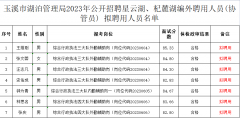 2023年玉溪市湖泊管理局招聘星云湖、杞麓湖编外聘拟聘用公示,公示时间:5个工作日,2023年07月15日-07月21日。