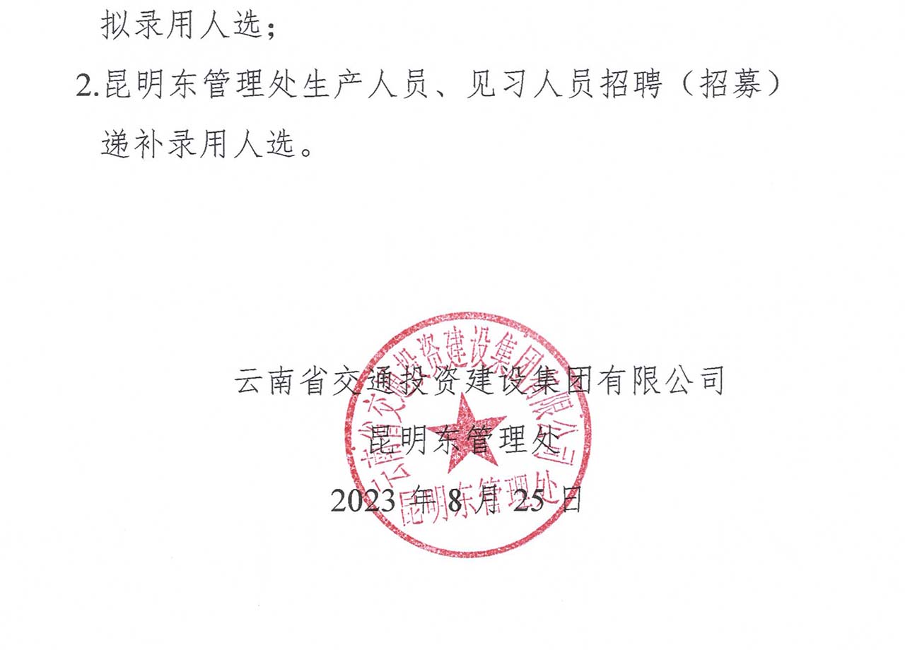 附件2:昆明东管理处生产人员、见习人员招聘(招募)递补录用人选