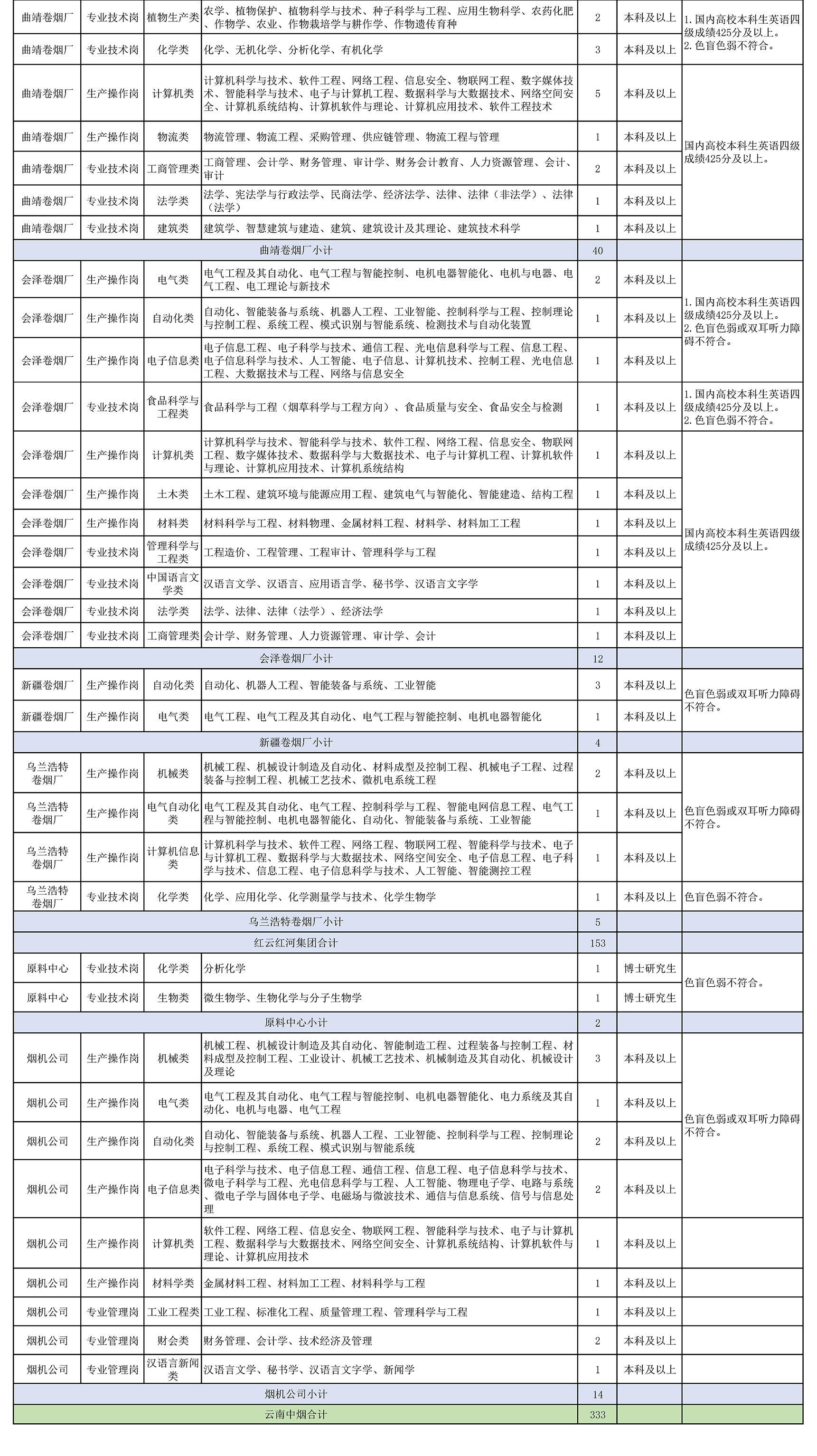 5.符合《云南中烟2024年毕业生招聘计划表》设置的专业、学历、外语等要求,具备与招聘岗位相匹配的能力和素质;