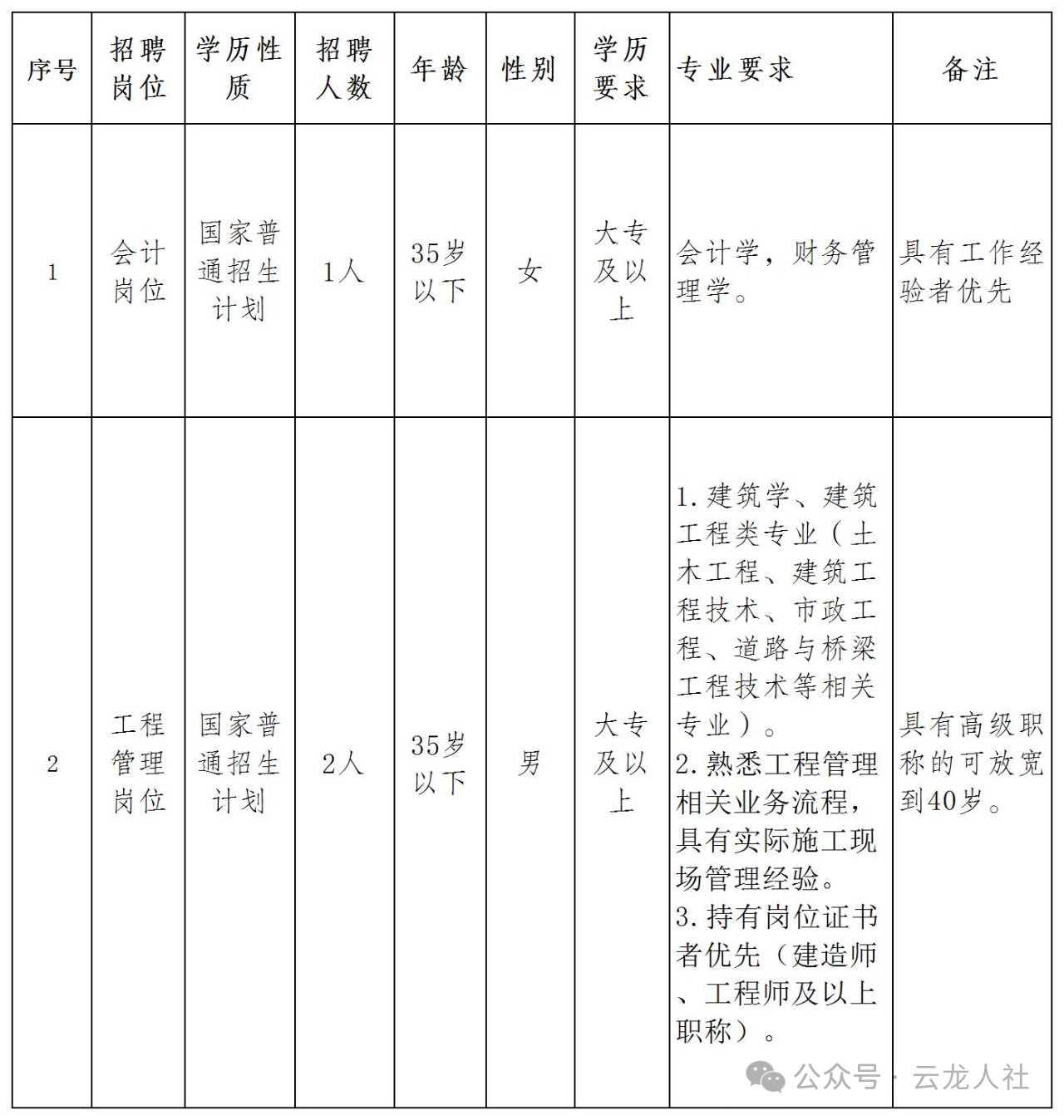 8.报考人员需云龙县户籍。