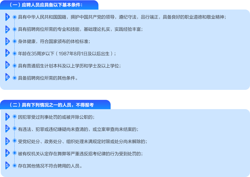 注:1.年龄要求在35周岁以下的须于1987年8月1日及以后出生。 2.专业目录详见《普通高等学校本科专业目录(2020年版)》。 3.福利待遇:正式签订劳动合同的聘用人员聘用期间待遇参照事业单位同等次岗位标准执行;缴纳五险一金,享受带薪年假。 |