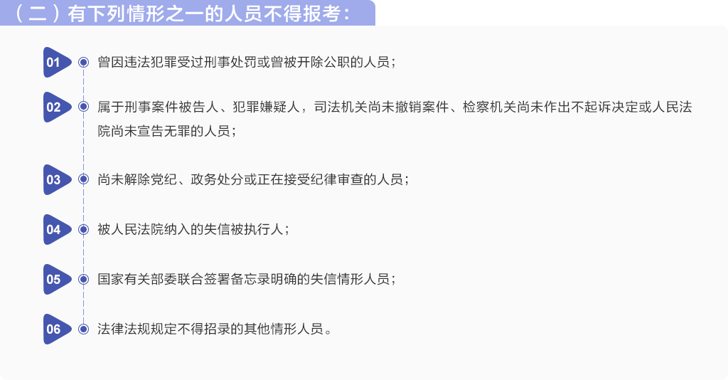 (一)拟录用人选在笔试、面试、考察、体检、公示等任意环节不满足条件的,均不予以录用。