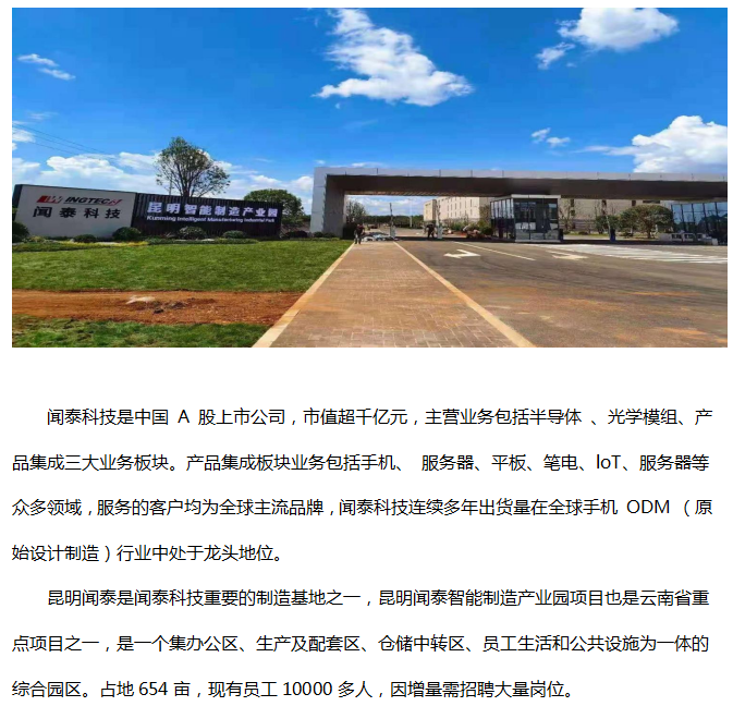 昆明闻泰通讯有限公司招聘简章