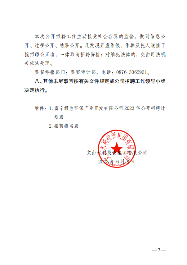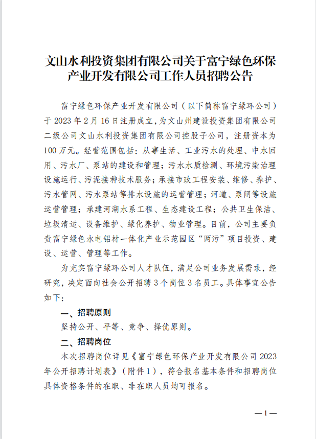 关于富宁绿色环保产业开发有限公司工作人员招聘公告