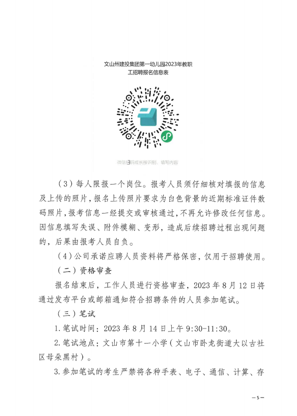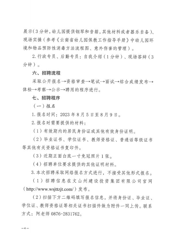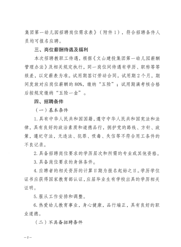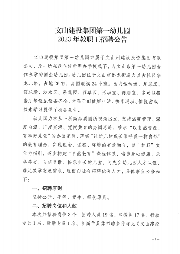 文山建投集团第一幼儿园2023年教职工招聘公告