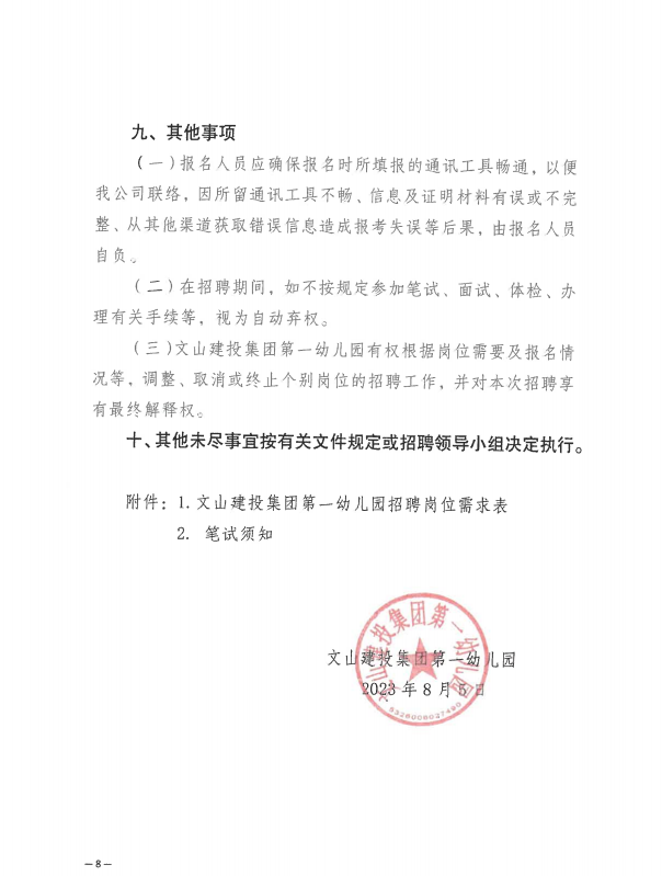 附件1文山建投集团第一幼儿园2023年教职工招聘需求表.pdf