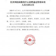 云南事业单位招聘网整理2020年红河州招商服务中心招聘通过资格审查 人员公告以供广大网友查阅,详情内容如下所示: