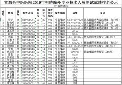 云南考试在线整理曲靖市富源县中医医院2019年招聘编外人员笔试成绩排名公示以供广大网友查阅,详情内容如下所示: