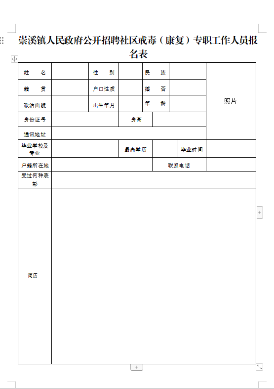 附件:崇溪镇人民政府公开招聘社区戒毒(康复)专职工作人员报名表(请使用微信扫描下方二维码下载)