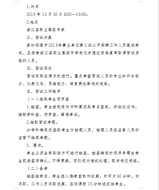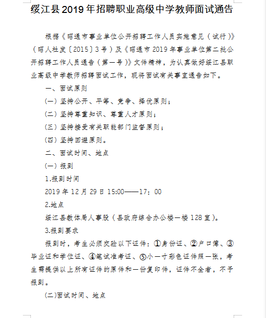 绥江县2019年招聘职业高级中学教师面试通告
