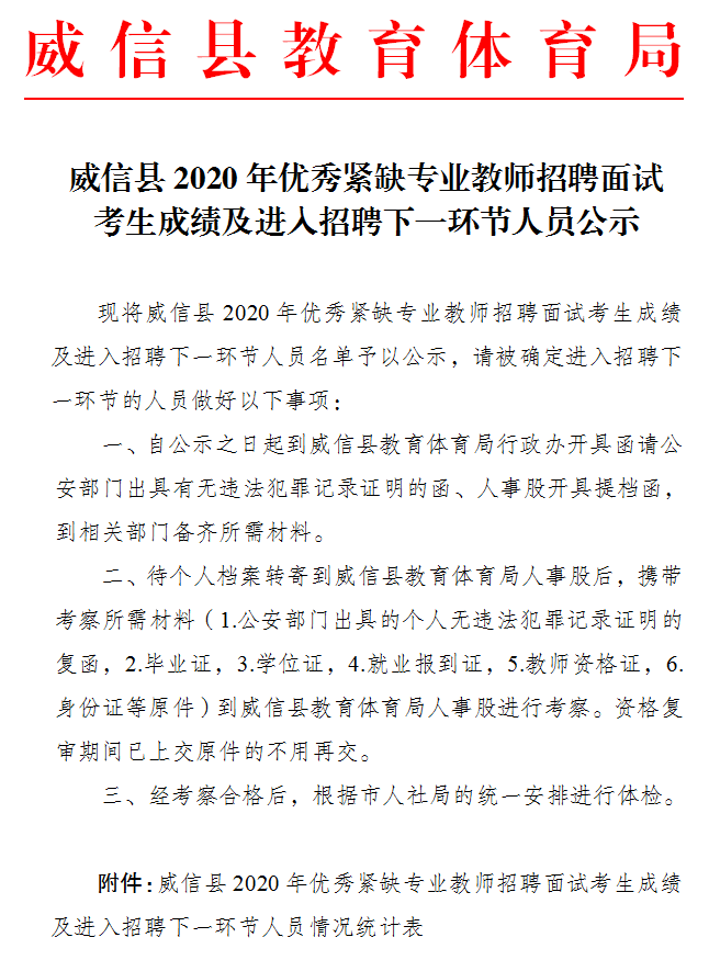 昭通市威信县2020年优秀紧缺专业教师招聘面试成绩公示