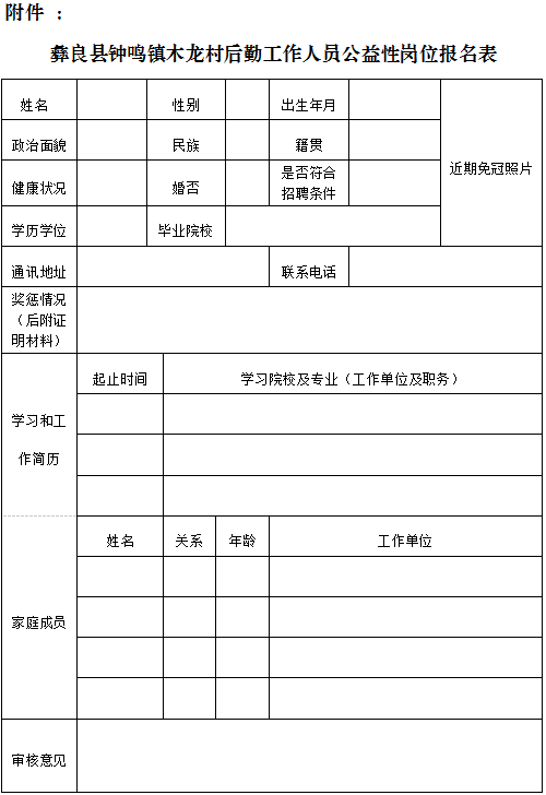 附件:彝良县钟鸣镇木龙村后勤工作人员公益性岗位报名表