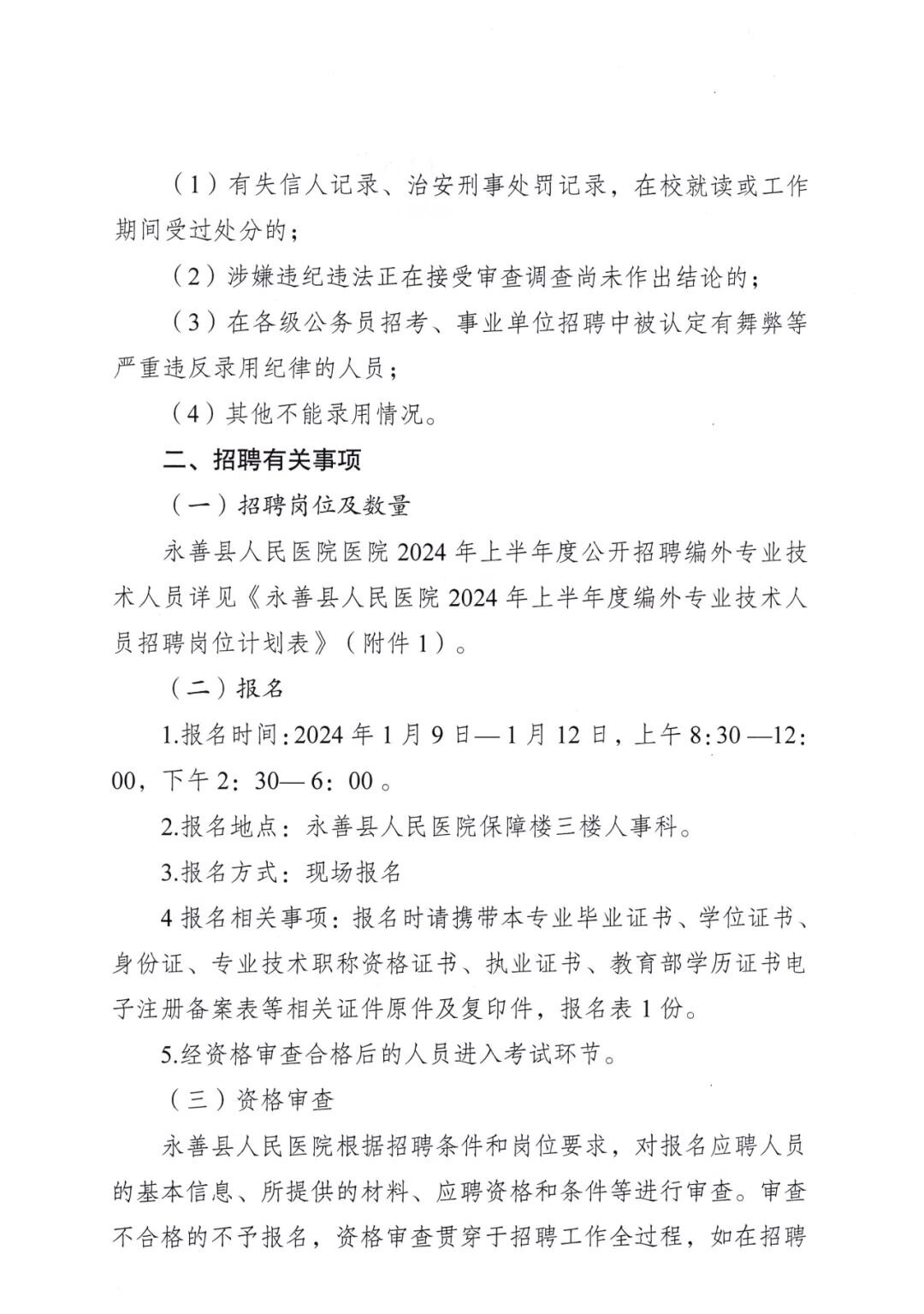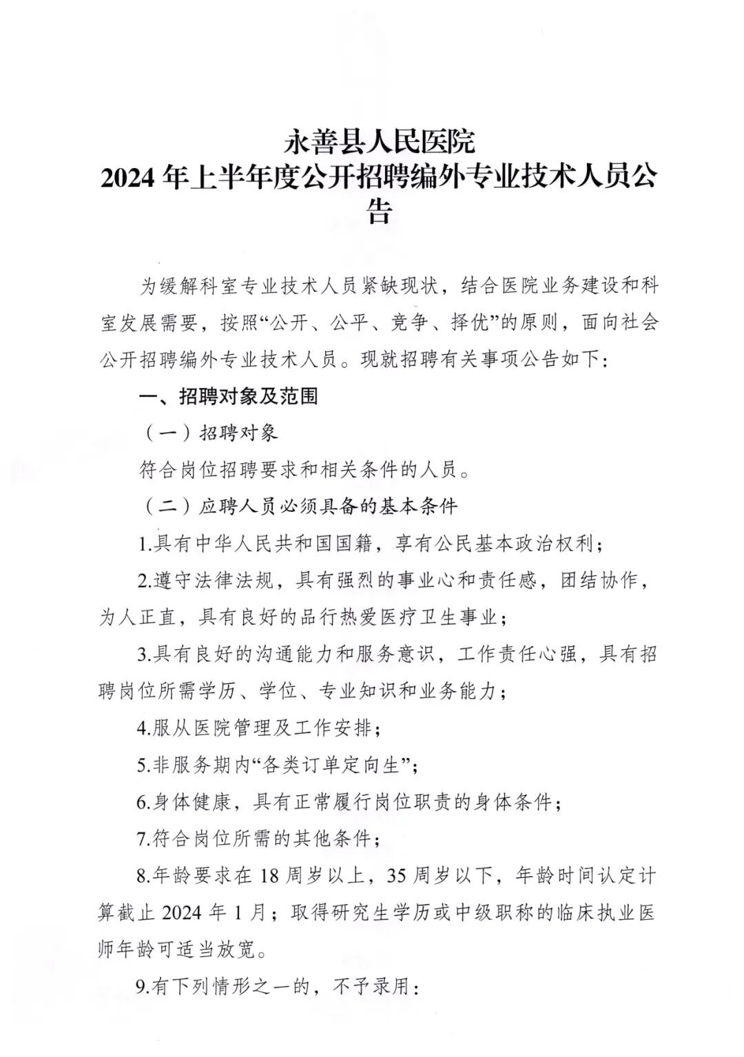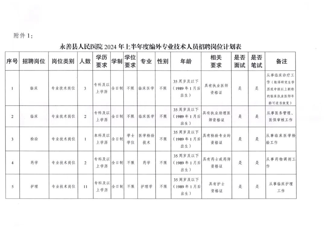 永善县人民医院2024年上半年度公开招聘编外专业技术人员公告