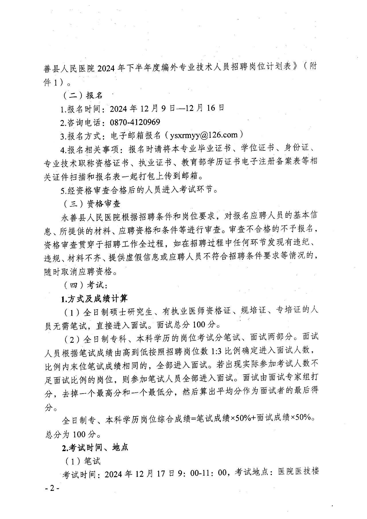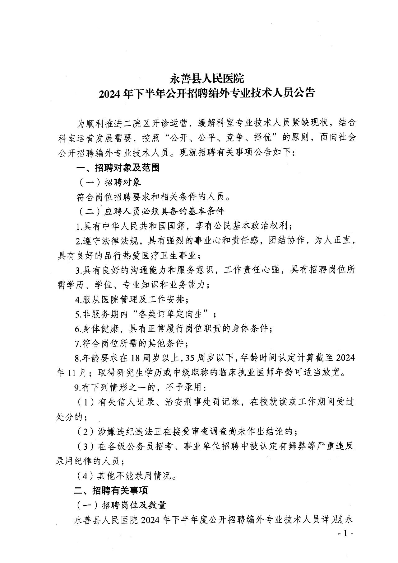 永善县人民医院2024年下半年公开招聘编外专业技术人员公告