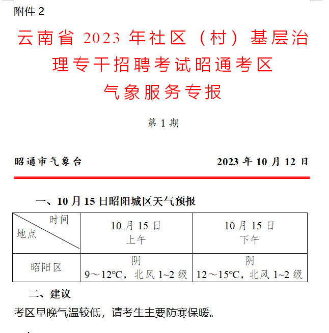 2.云南省2023年社区(村)基层治理专干招聘考试昭通考区气象服务专报