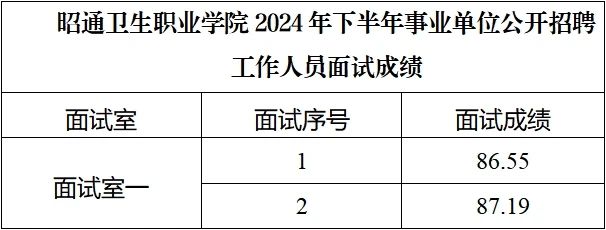 昭通卫生职业学院2024年下半年事业单位公开招聘工作人员面试成绩公布