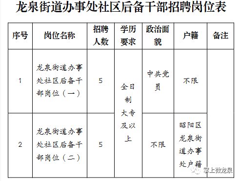 龙泉街道办事处招人啦!